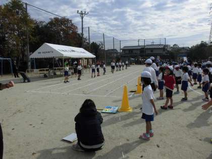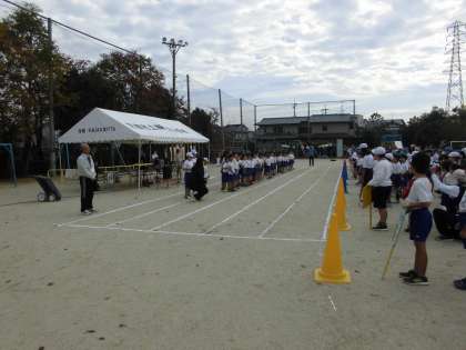 右京南支部 合同運動会 が本校の運動場で行われました。右京南支部の育成学級の子どもたちが全員集まり,本校の3組の子どもも参加しました。また,各プログラムで学年ごとに参加して交流しました。