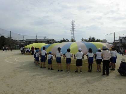 5年生は,バルーンで一緒に踊りました。
