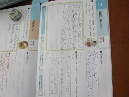 教材を通して家族の一員ということについて考えました。学習の最後には,自分が家族の一員として行っていることがどんなことか,それぞれ家でお手伝いをしていることなどを発表していました。