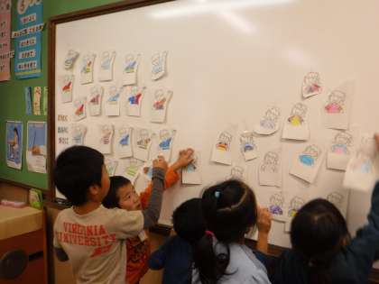 「何色が好きかな?」「ぼくは赤が好き!」「私は紫色です。」