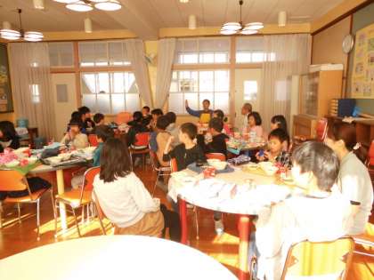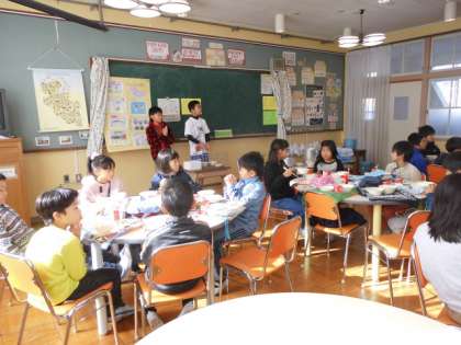 今日は,給食調理員さんも一緒に給食を食べ,今日の献立のブロッコリーの作業が大変でした等とお話ししてくれました。