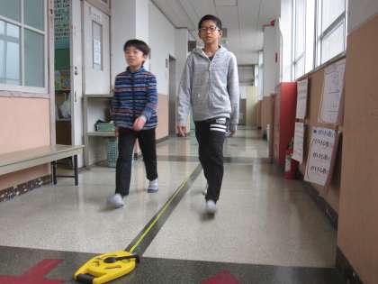 自分の歩幅がどれだけになるのか,10歩の距離の平均を出してから,1歩の長さを求めました。