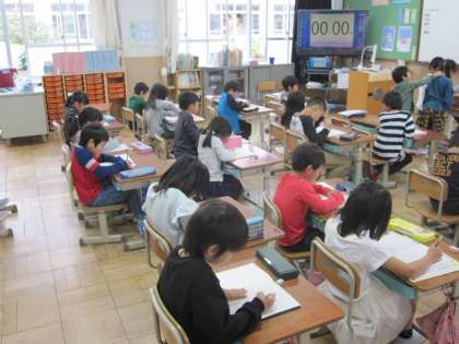 漢字の練習を頑張っていました。姿勢正しく,鉛筆の持ち方も大切にしながら書くことができていました。