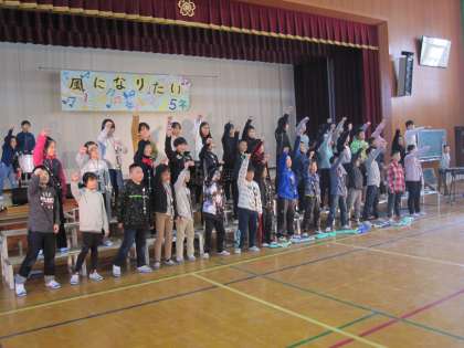 「風になりたい」では,とっても楽しそうに体を動かしながら歌も歌います。学習発表会では,全校を巻き込んで楽しい雰囲気に包んでくれることと思います。