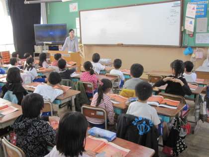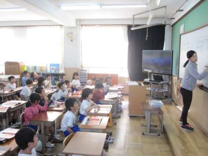 「夕やけこやけ」の曲を聴いて,様子を思い浮かべたことを交流しました。その後,曲の様子が伝わるように歌いました。
