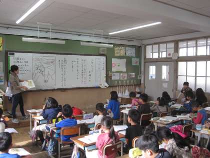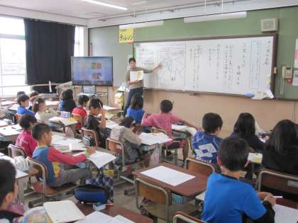 面白いと思ったところや心に残ったところを文に表して,紹介カードに書きました。物語の内容をとらえたキャッチコピーを書くことができるように学習をしています。