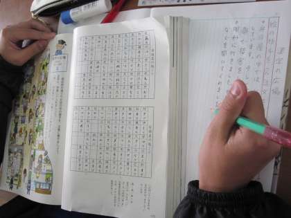 これまでに学習した漢字を使って,絵を見て,商店街の様子の文を作ってノートに書きました。使える漢字を増やして,普段から漢字を使えるようにしてほしいと思います。