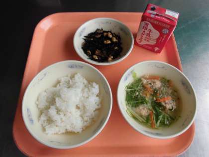 ごはん・牛乳・水菜とつみれのはりはり鍋・ひじき豆