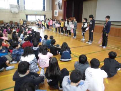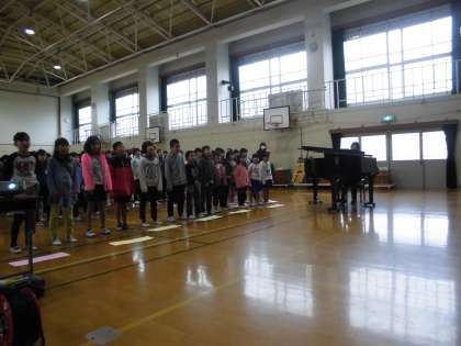 最後に、全員で「ともだちに なるために」を歌いました。高学年は、2部合唱になるように美しいコーラスを歌ってくれました。