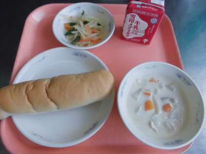 コッペパン(国内産小麦100%)・牛乳・だいこんのクリームシチュー・じゃがいものソテー