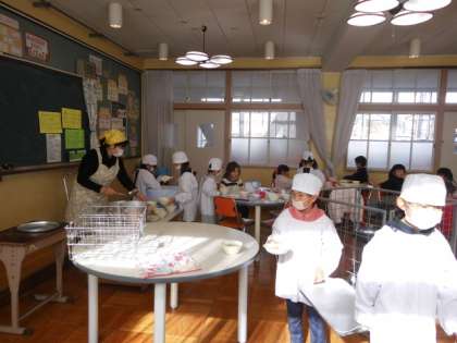 給食前に教室で給食ができるまでには,たくさんの人たちが関わっていることを学習しました。そんな給食をどういうふうに食べたらいいかを最後に考えました。