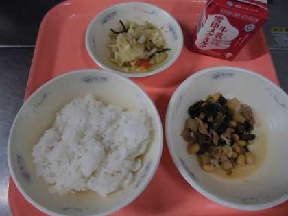 ごはん・牛乳・肉みそいため・ごま酢煮
