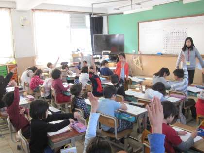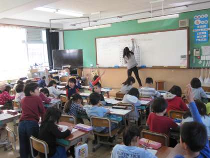九九の表を使って,九九にはどのようなきまりがあるのかを学習しました。表の中からたくさんのきまりを見つけていました。