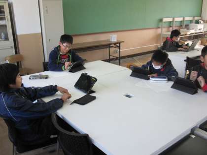 歴史の学習のまとめとして,歴史新聞を作っています。そのために,パソコン,タブレットを使って,自分で決めたテーマの人物などを調べました。