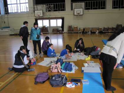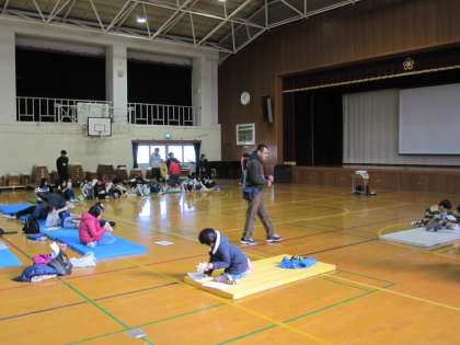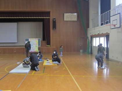 本校で四校交流会が行われました。交流会の最後は,それぞれの場所に分かれて,工作遊びをしました。作ったものを使って,みんなで遊びました。