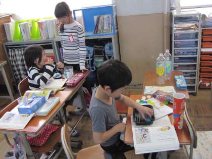 生活科「あそんでためして くふうして」の中で,国語科で学習している「おもちゃの作り方」のおもちゃを作ります。おもちゃを作って,その作り方と遊び方などを書いた説明書を作っていく予定です。