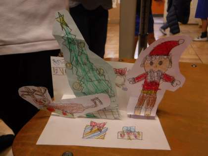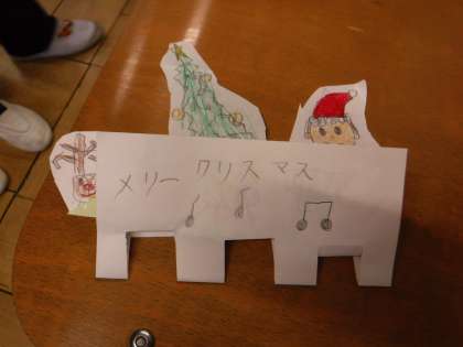 と書かれたカードでした。なにやらサンタやトナカイの顔がのぞいており,開くと,とてもかわいらしいクリスマスカードが出てきました。