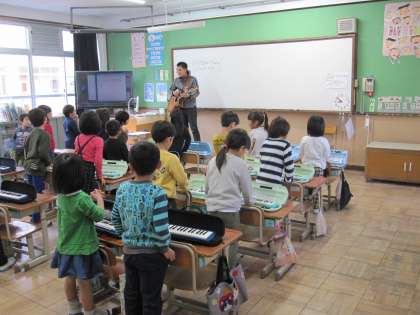 音楽の時間には,先生のギターに合わせて,これまで学習してきた曲をみんなで楽しく歌いました。