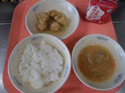 ごはん・牛乳・がんもどきのあんかけ・豚汁