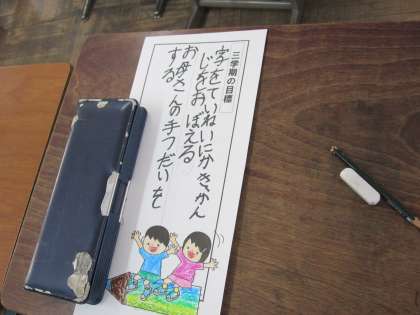 3学期の目標を考えました。学校やお家で頑張ることを書きました。目標に向けて頑張ってほしいと思います。