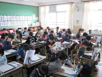「早春」を書きました。「早春」を書くにあたってのポイントを確認し,姿勢を大切にしながら,筆を立てて書くことができました。