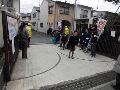 南門でもあいさつ運動が行われました。PTA,地域の皆様,いつもありがとうございます。