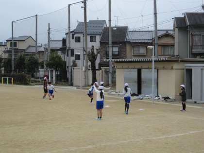 走り幅跳びと縄跳びを並行して学習しています。走り幅跳びでは,自分の記録に挑戦するために,踏切,助走,跳んでいるときの姿勢を考えながら学習を進めています。