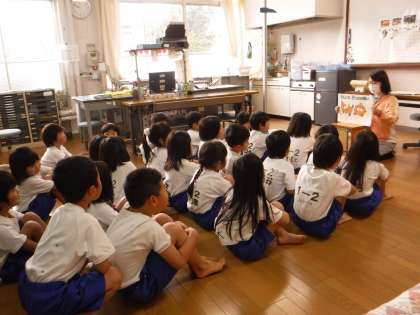 と,紙芝居を読み始めました。今日のテーマは「うんこ」。でもしっかり笑わずに集中して聞けた1年生です。毎朝決まった排泄の習慣を身に付けることは,大切なことだと学んだようです。