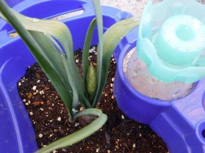 中庭のプランターに植えてある,すいせんの球根が大分大きくなりました。今年度は「人権の花運動」として,9月に戴いた球根を植えて,大分時間が経ちました。