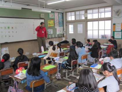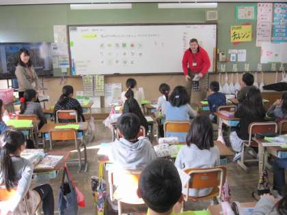 身の回りの物の名前の英語表現に慣れ親しみました。動物や体の部分など,たくさんの英語を使いました。子どもたちは,元気よく声を出して慣れ親しみました。
