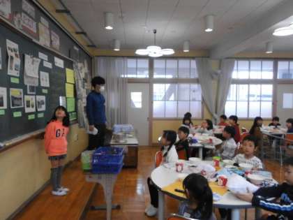 給食前に毎日食べている給食ができるまでにはたくさんの方々が関わってくださっていることを学習し,給食をどのような思いで食べたらいいかを考えました。