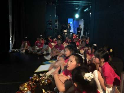 出演前の様子です。昼頃に見せていたの笑顔から一転、緊張した様子のスマイラーズ。笑顔で踊りきれますよう,がんばります!