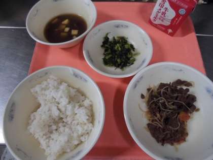 子どもたちから、「『牛肉のしぐれ煮』と『だいこん葉』美味しかったです。『いもぜんざい』は、いもの甘みと小豆の甘みがマッチしていて、汁も美味しかったです。」と、感想をくれました。