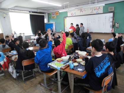 今日のクイズは、5・6年の教室を訪問しました。さすがにちょっと難しい問題でしたが、たくさん手が上がっていました。