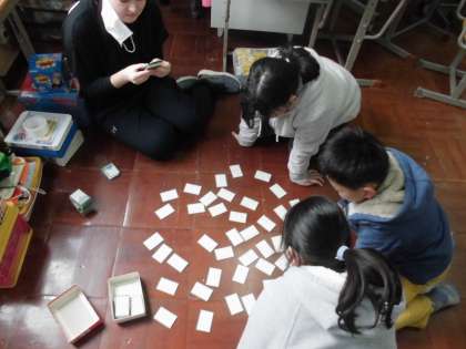 今日は、百人一首をしました。通常の方法のグループと、坊主めくりのグループに分かれて活動しました。