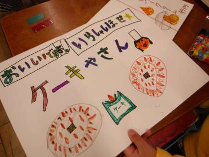 国語科「ものの名まえ」では,発展学習のお店屋さんごっこの準備が仕上げに入っています。今日は看板を作ってみましたが,グッとお店屋さんらしくなりました。子どもたちは早くお店をやりたくて仕方がないようです。しっかりと接客できればいいなと思います。