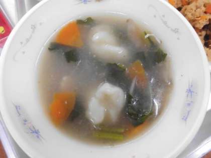 すいとんは,給食室で手作りしています。中学年では,3つくらいずつ入っていました。中には,7つ入っていたよ!!という子もいました。