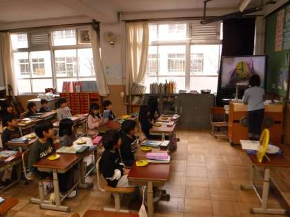 この日は自由参観日でした。1年生では,体育科「とびばこあそび」,音楽家「音を合わせて楽しもう」,算数科「とけい(2)」,国語科「たぬきの糸車」,生活科「ふゆも元気に」を参観して頂きました。