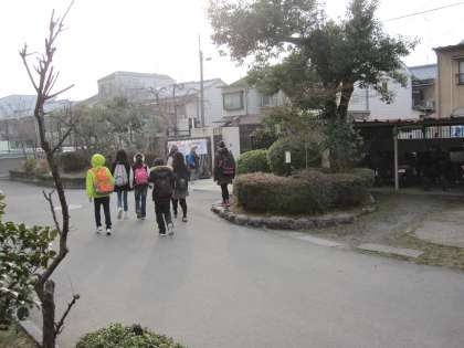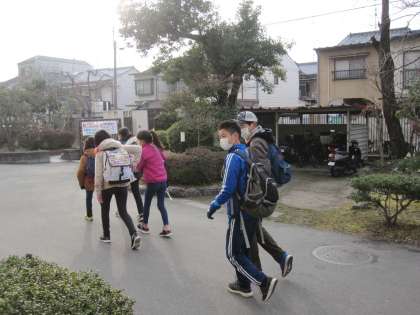 6年生が,これまでに計画してきた市内めぐりに出発しました。計画にそって,安全に気を付け,グループで協力し合って活動してきてほしいと思います。