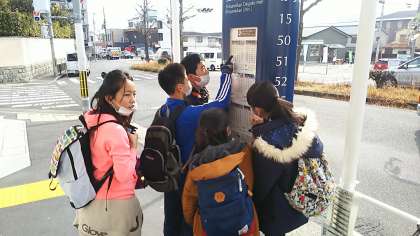 自分たちで時刻表を見て 早く来たバスに乗るようです。