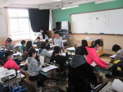 「林」を毛筆で書きました。様々な練習用紙を用いて,整った字が書けるように練習しました。