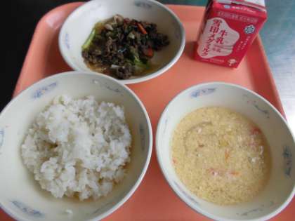子どもたちから、「『プルコギ』は、肉と野菜の味が、からみ合っていて、美味しかったです、『中華コーンスープ』は、コーンの味がして美味しかったです。」と、感想をくれました。