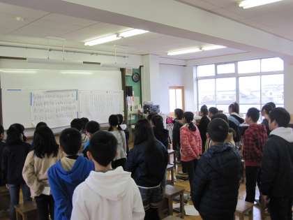 卒業式や6年生を送る会での歌を練習しました。学校の代表として1年間がんばってきた6年生に感謝の気持ちを込めて,練習を頑張っていました。