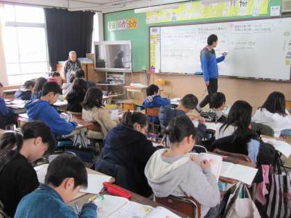 直径と円周の関係を調べていきました。表から横の関係や縦の関係を見つけ,比例関係を見つけることができていました。