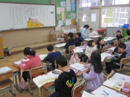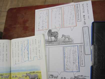 しまうまの赤ちゃんについて,大きくなっていく様子など,ワークシートに書いています。子どもたちは,これまでの動物と比べながら読み取ることができていました。