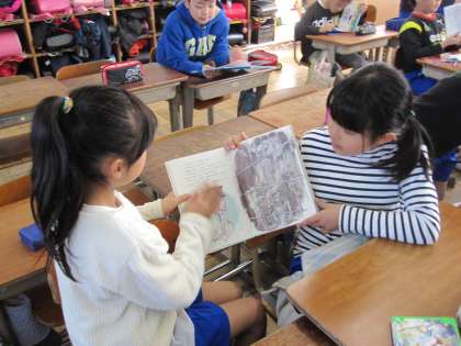 3年生に読聞かせをするために,グループで分かれて練習をしました。お互いにアドバイスすることができていました。