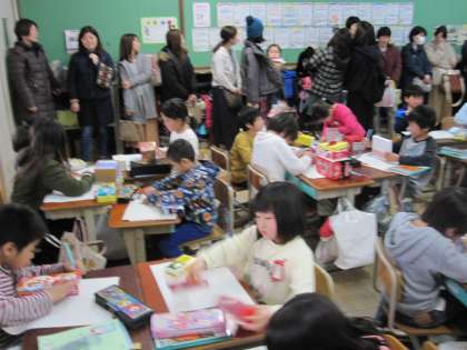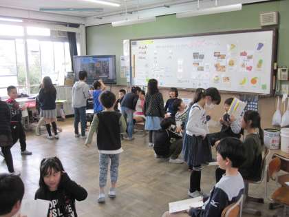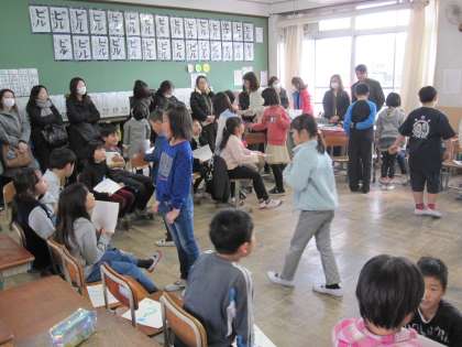 2年生は,箱の形を調べ,面が6つあることを学習しました。3年生は,外国語活動で,クイズとヒントの会話のやり取りに慣れ親しみました。お家の方にたくさん来ていただきありがとうございました。