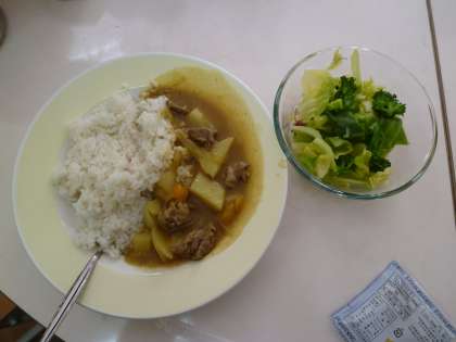 はい!カレーとサラダの完成で〜す!