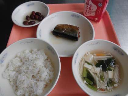 麦ごはん・牛乳・さんまのかわり煮・金時豆の甘煮・すまし汁