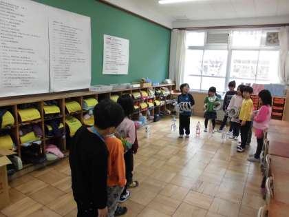 梅ノ宮保育園の園児と交流会を行いました。初めにあいさつをし,小学校の中でたくさんの体験をしてもらいました。1年生教室の前では,ペットボトルボーリング。教室の中では,輪投げやかるたなどたくさんの場所で楽しんでもらうようにしました。
